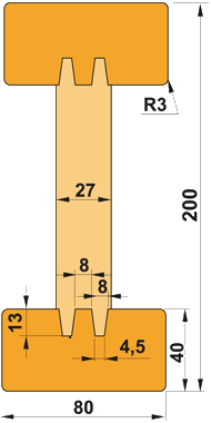 Спецификация балки для опалубки перекрытий.Высота - 200 мм. Ширина полки – 80 мм Толщина полки – 40 мм Толщина фанеры – 27 мм Глубина врезки зуба фанеры – 13 мм Вес - 6 кг/м.п.
