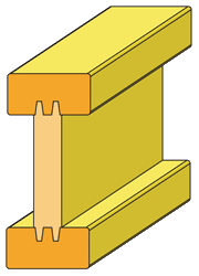 Внешние части или "полки" выполняются из древесины хвойных пород и имеют сечение 40х80мм. Внутренняя часть балки или стойка изготавливается из березовой фанеры ФСФ толщиной 27 мм. Стойка и полки соединяются методом шип-паз, а соединение проклеивается высококачественным водостойким клеем.